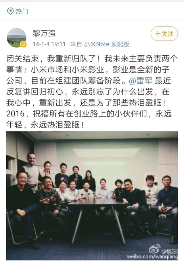 2016 年初,黎万强通过微博宣布回归,表示今后将负责小米市场与小米影业。当年6 月小米影业正式注册成立,唐沐担任小米影业总裁。技术出身的唐沐还兼任小米 VR 或路由器总经理。当与光线传媒总裁王长田、万达电影院线总裁曾茂军在上海电影节同台时交流时,唐沐谈的更多是小米在 VR 的布局。