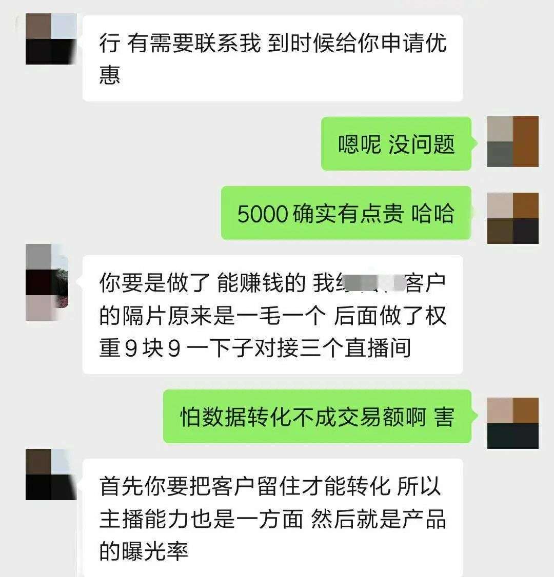 除此之外,5000/周的公司还给我分享了他们的成功案例:某客户在购买了提升权重服务后,一下子对接了三个直播间,隔片价格也暴涨。