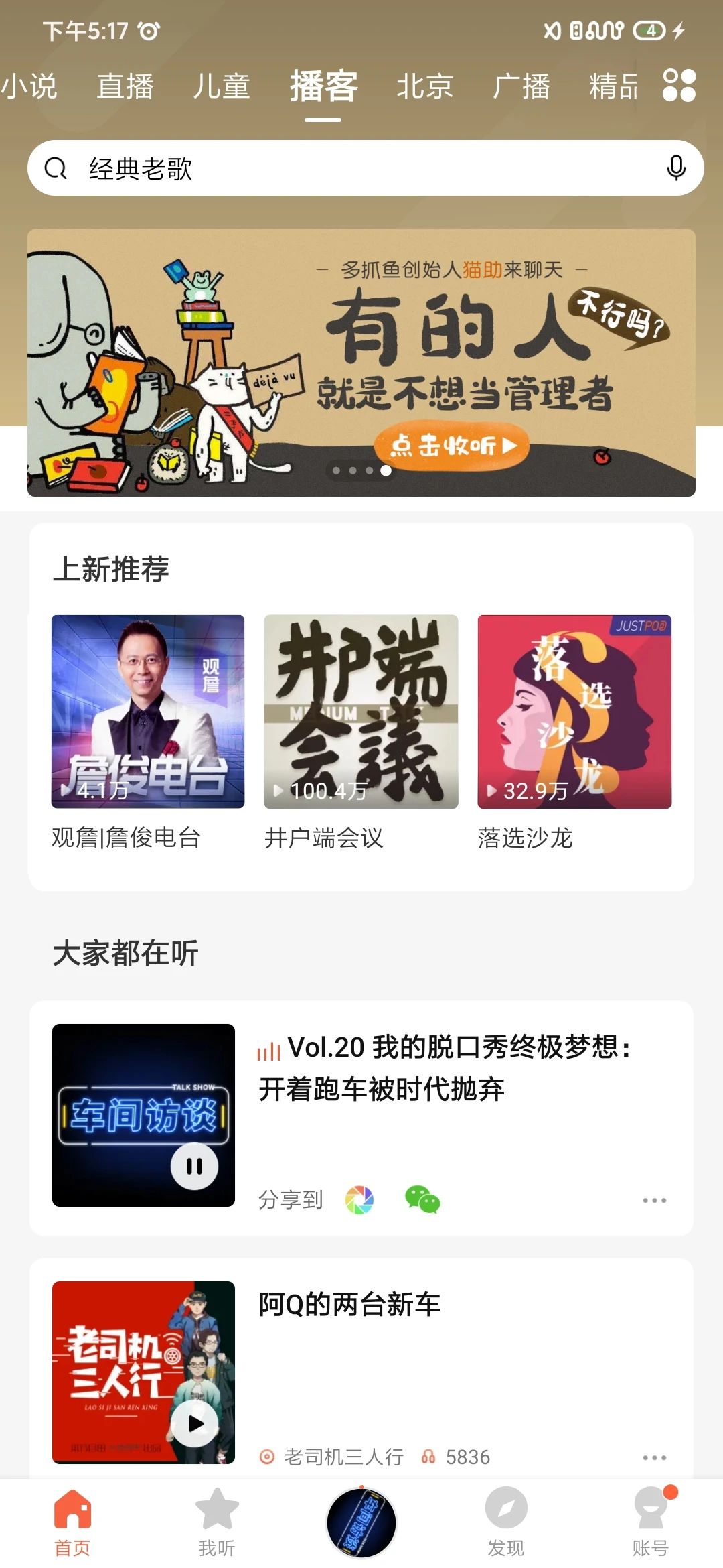 同时QQ音乐,网易云音乐等音乐平台也有播客的身影。但在这些平台上播客始终处于一个尴尬的位置。打开这些平台,音乐、广播剧、有声小说、音频直播等首先映入眼帘,而播客总是被藏在较深的角落。