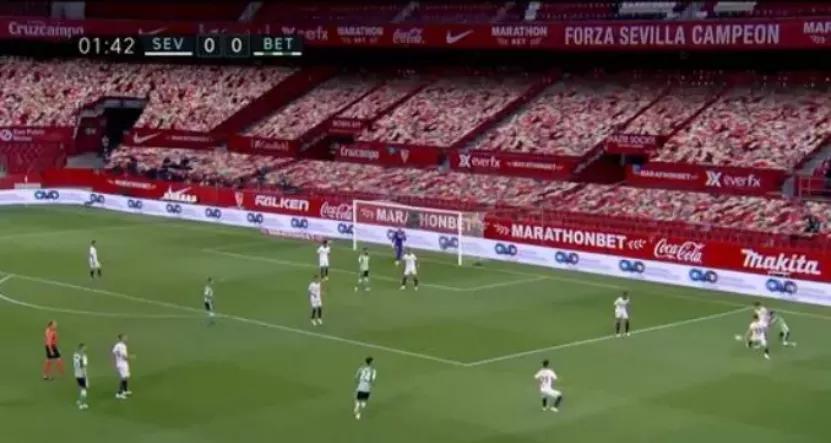 比如,在西甲重启的比赛中,虚拟球迷的作用主要为了给线上观赛的观众增加看球氛围。西甲与挪威的公司Vizrt公司合作,在比赛画面应用了AR虚拟技术。在转播画面生成转化中,看台上将会出现虚拟球迷的形象,同时,电视或网络转播也会出现球迷的庆祝声,这些声音会是EA的游戏中的加油声,以至于让荧幕的比赛不仅是比赛画面。