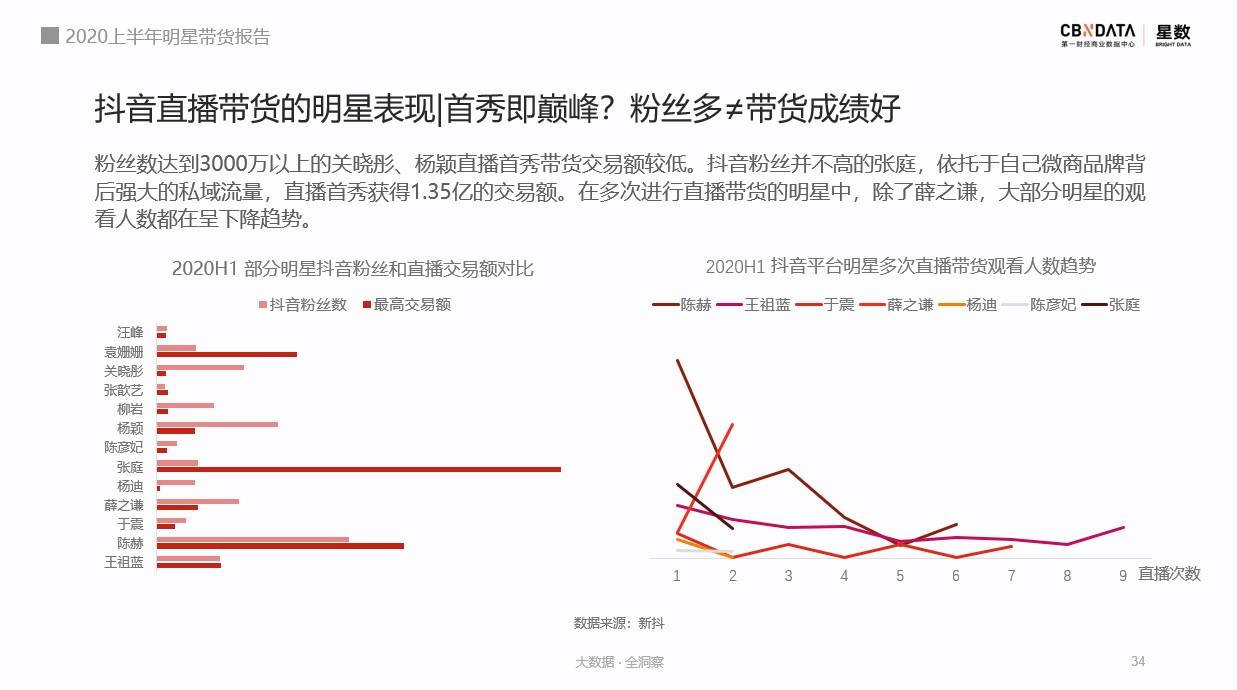 - 抖音直播:首秀火热,后劲不足,粉丝与带货成绩不成正比