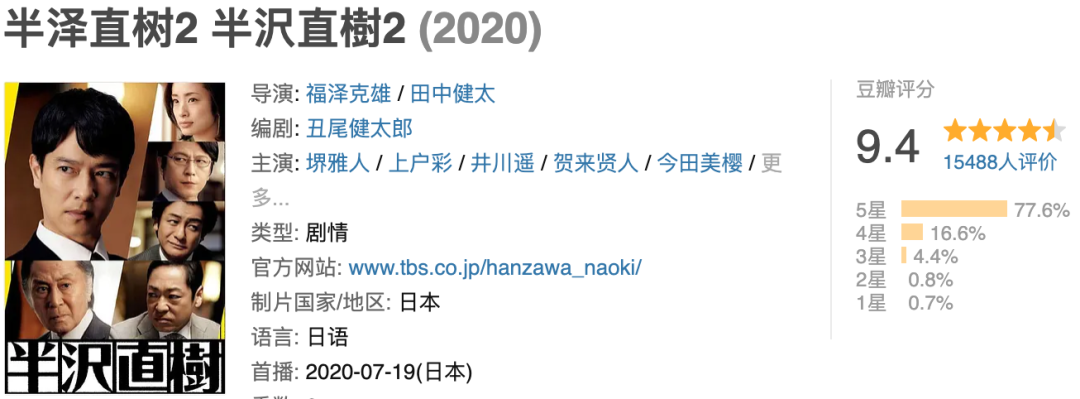 如此来看,《半泽直树2》无论是对于亚洲影迷的情怀交代,还是对亚洲社畜们的情感寄托,以及对日本TBS电视台的收视率的保证,等等方面,这七年的等待或许非常值得。