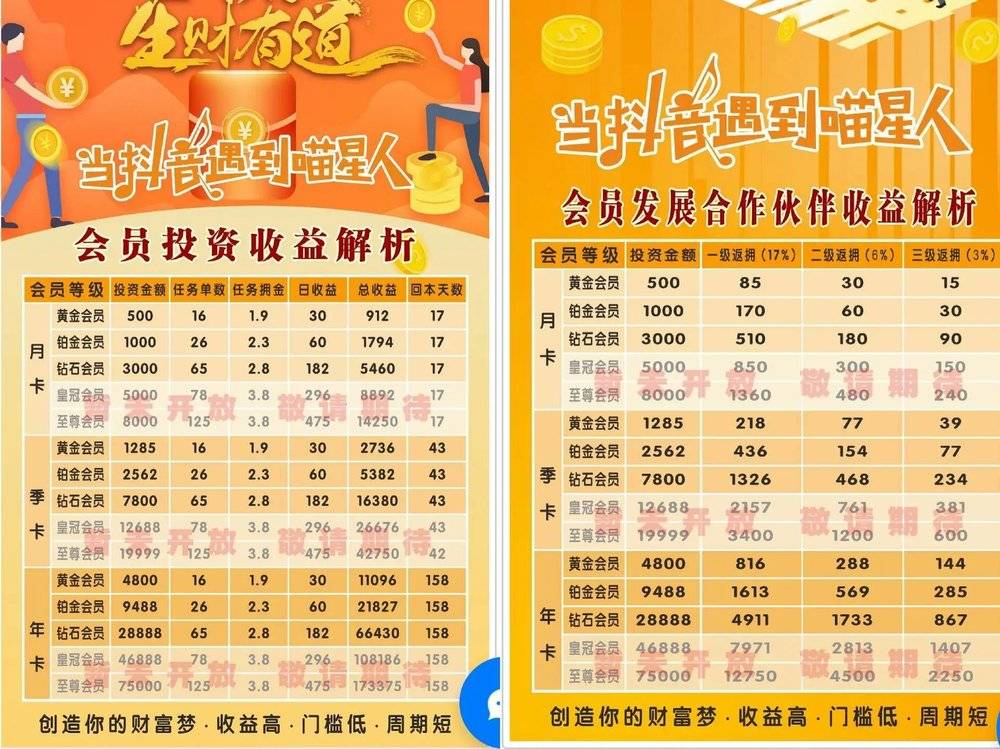 按照平台规则,获利方式有两种,一是自己充值升级为不同等级的会员,赚取做点赞关注任务的钱;二是邀请新会员,赚取新会员充值的返佣。