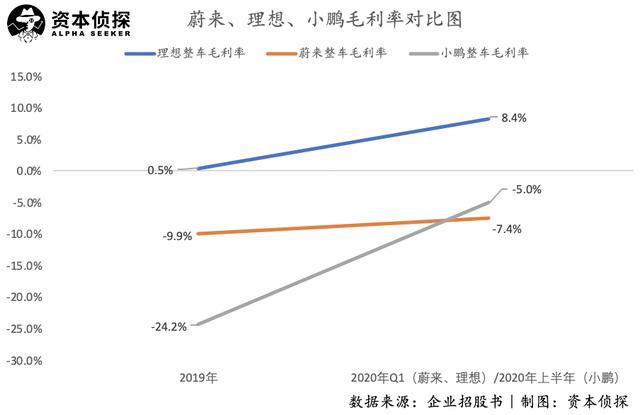 - 理想在开始规模化量产之后,就已经实现正向毛利,小鹏的毛利率水平在今年已经有了很大幅度的提升,但依旧未能转正;