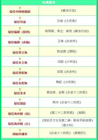 当然,不止《破冰行动》,虽然视帝视后的桂冠仍然归属于《酒馆》、《少年派》传统电视剧,但是《庆余年》拿下了最佳编剧(改编)奖和最佳男配角奖,《长安十二时辰》摘下最佳美术、摄影和国际传播奖。针对于国产电视剧颁发的11项大奖中,网剧拿下了7席,首秀亮眼。