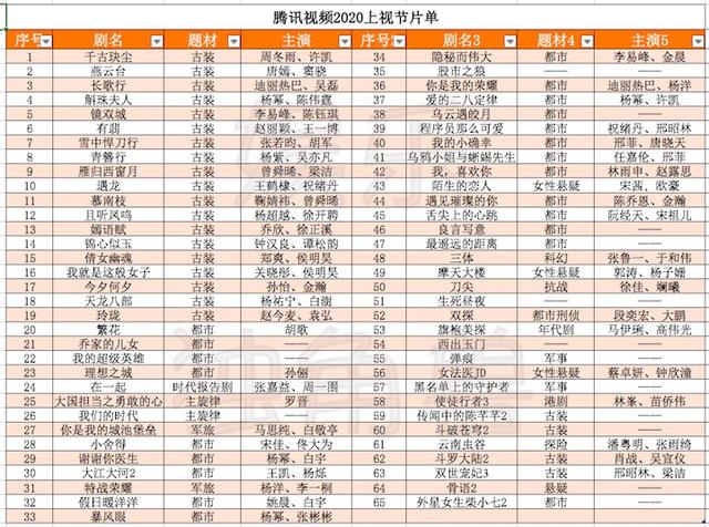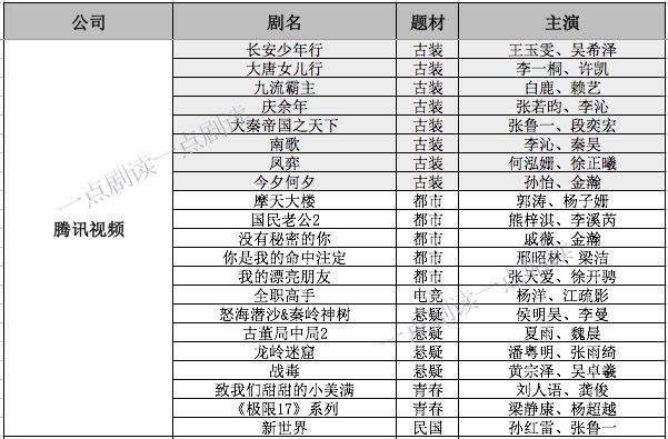 其二,在题材布局上,虽然和市场都市剧占主导、古装题材较少的大趋势相一致,但是两者在侧重上又各有不同。去年在整体古装市场遇冷的情况下,腾讯视频以41%的古装剧布局吸引了大量目光,今年其同样对古装剧情有独钟,不过和去年只有《庆余年》《大秦帝国》两个头部不同,今年其显然是瞄准爆款而来。