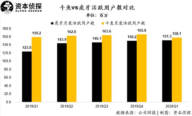 - 而斗鱼方面尽管在收入规模上仍略逊于虎牙,一季度营收22.8亿元人民币,但收入同比增幅则为53%,高于虎牙收入同比增速。