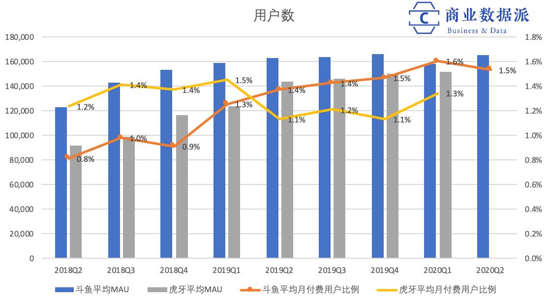 在2019年Q1之前,斗鱼的平均MAU(月活跃用户数)一直高于虎牙,但用户付费比例一直低于后者。在上市之后,斗鱼采取一系列措施,提高用户付费的转化率。