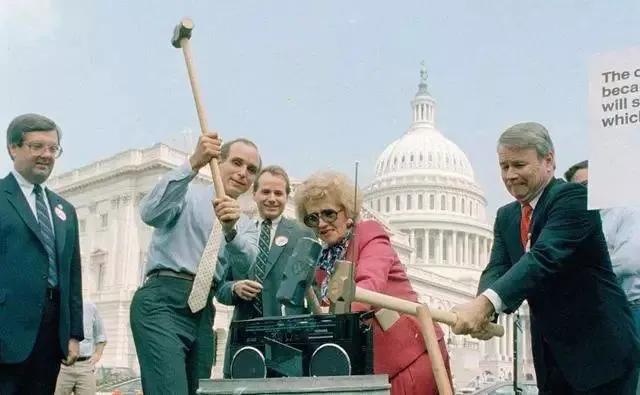 虽然东芝的封锁不因半导体而起,但商业审查和出口禁令带给日本半导体巨头以严重打击,美国又拔除了一颗半导体产业的绊脚石。这件事非常有意思的一幕,是一些美国议员在义愤填膺地在白宫门口用斧子砸毁东芝产品,大骂东芝和日本人准备毁灭美国。妖魔化的手法,都与今天如出一辙——可能差别在于当时议员用斧子,如今总统用推特。
