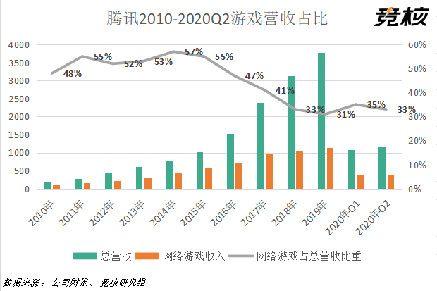 如上图所示,在2020年第二季度,网络游戏占腾讯总营收33%。腾讯Q2期间,来自社交网络收入为267.14亿元,增长29%。