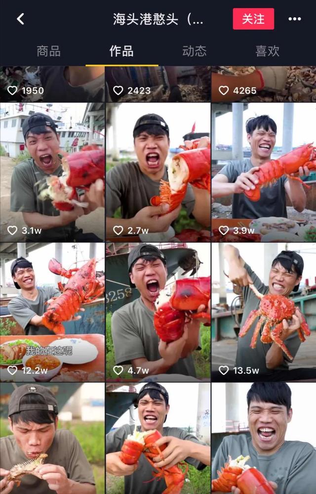 吃货邱小胖、胖胖夫妻都是夫妻搭档;海头港憨头是一家经营海鲜的商家,他们拍摄的食物都是超级大的海鲜。王大山Sanmei的视频噱头是专业代吃,比如代吃月子餐、代吃分手后的清一色“原谅绿”。