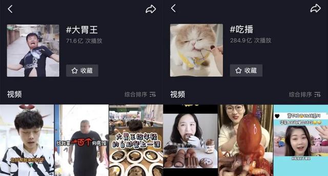 近两年来,揭秘吃播假吃、催吐的新闻屡见不鲜,但吃播始终是各大视频平台上的热门分类,抖音上“吃播”话题拥有284亿次播放,“大胃王”话题播放量也超过71亿次。