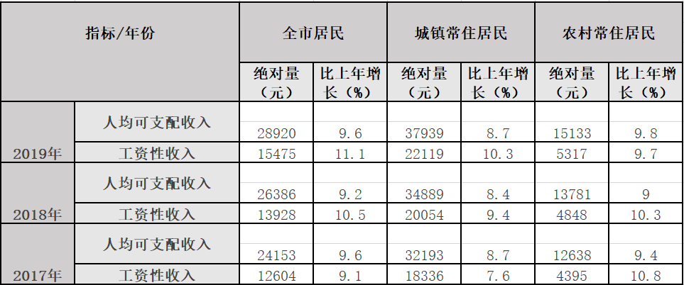 按常住地分,城镇居民人均可支配收入37939元,增长8.7%;农村居民人均可支配收入15133元,增长9.8%,农村常住居民增幅大于城镇常住居民。