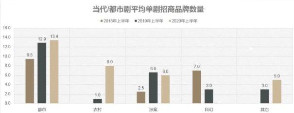 另一方面,剧集题材上,都市剧在撬动广告植入上也有着天然优势,毕竟对于大多数品牌来讲这意味着真实的生活场景和生活方式,契合度极高。数据显示,上半年都市剧植入品牌数为13.4个,农村题材为8个,之后是涉案剧;同时与今年女性剧集和古装剧的细分题材布局相一致,品牌投放同样也对此有所侧重。