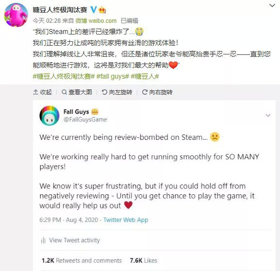 好在官方虽然经验不足,但善于纳谏。8月9日,官方发布相关推特,表示已意识到存在“speedhackers”;8月12日,《糖豆人》官微发布公告,表示开发团队已经开启了游戏外挂监测系统,问题处理的速度圈粉不少,但实际效果还需要继续观察。