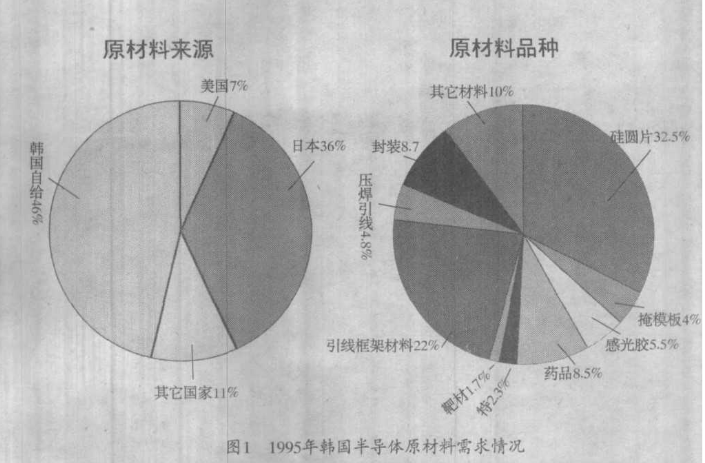 直到上世纪末,据韩国半导体产业协会统计 , 韩国需要25 亿美元的设备,其中82%依靠进口,原材料需求量更是增长了近3倍,价值19亿美元的市场中自给程度还不到一半,只有46%。