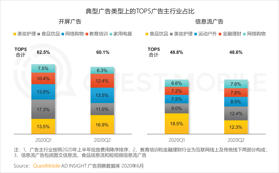 4.1 美妆护理广告占比稳步增长;食品饮品受疫情影响,广告占比明显减少