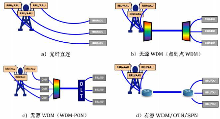 5G前传的典型方案包括光纤直连、无源WDM和有源WDM。运营商和设备商需要综合考虑站点的光纤布线、光模块及传输设备的综合成本,选择不同的站点传输网建设方案。