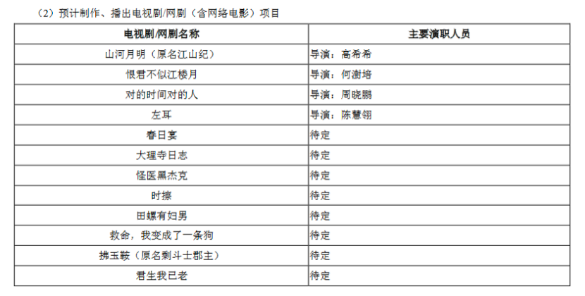 而在此次发布的半年报中,我们发现预计制作、播出电视剧/网剧(含网络电影)项目已经增加到了21部。在电影业务受阻的情况下,光线也在积极加强电视剧业务布局,深化在剧集领域的影响力。