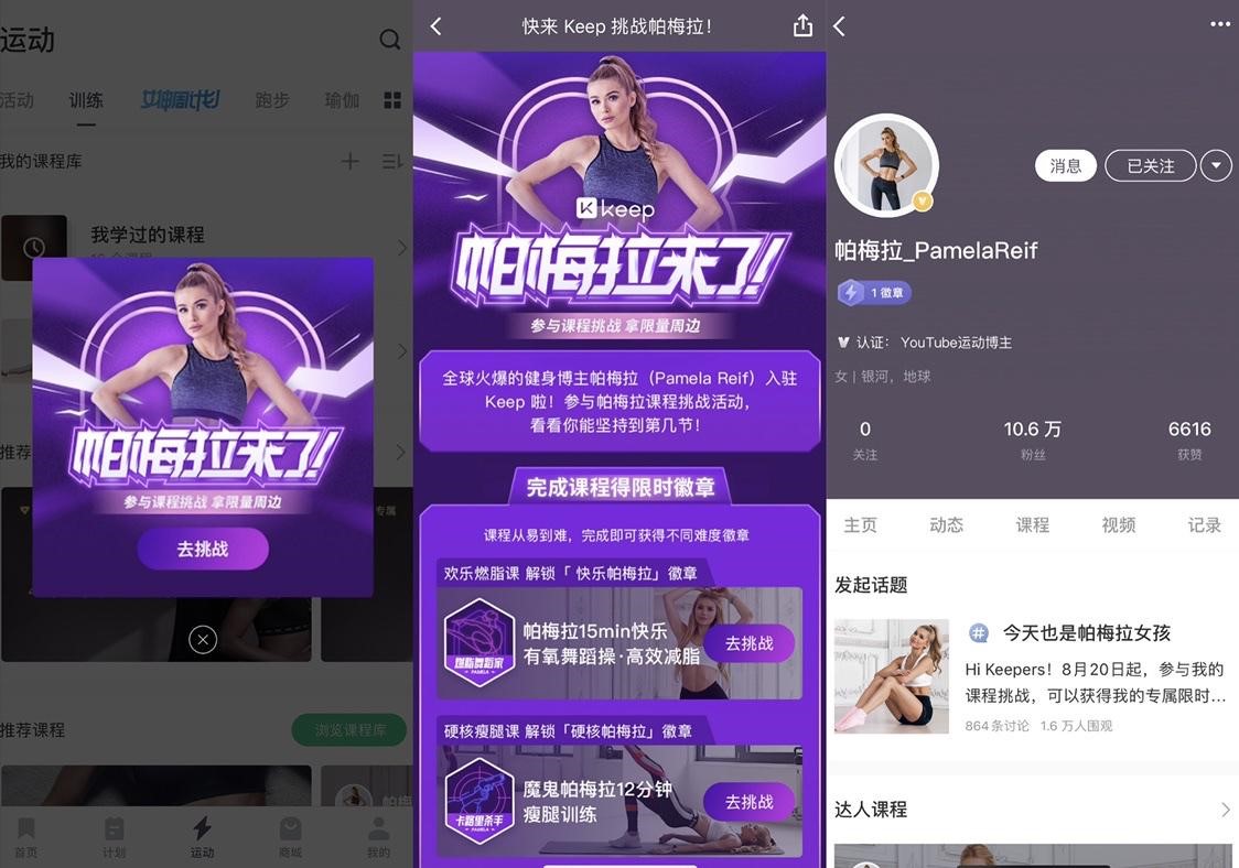 帕梅拉话题度暴涨,跟疫情期间健身房关门,居家健身意识的提升不无关系。Keep方面也告诉C站,这次合作从疫情后复工就开始推进,Keep团队最早在今年1月就注意到了帕梅拉。