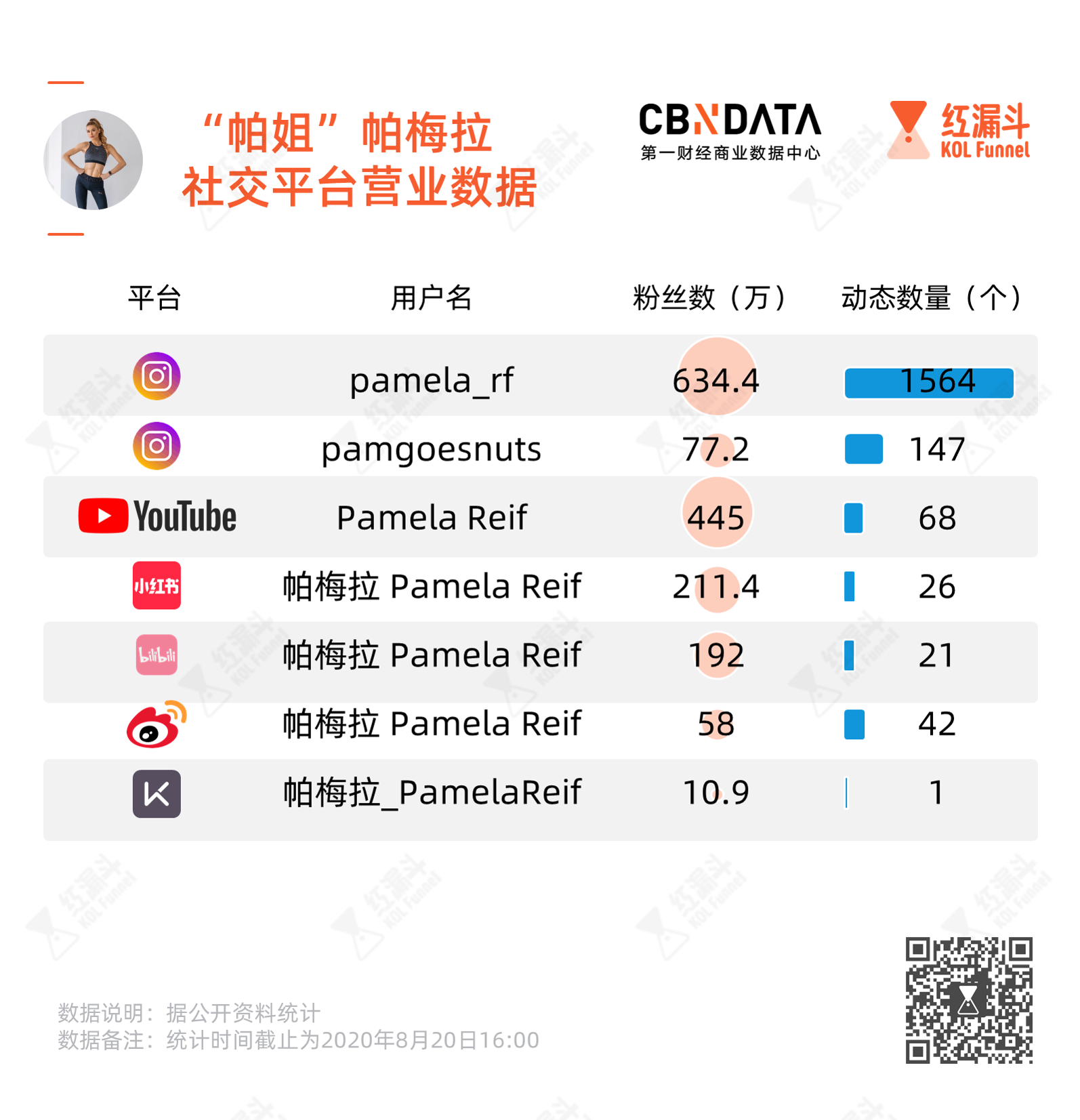 从数据来看,帕梅拉在国内的发展路线十分全面。粉丝量最高的平台是小红书。