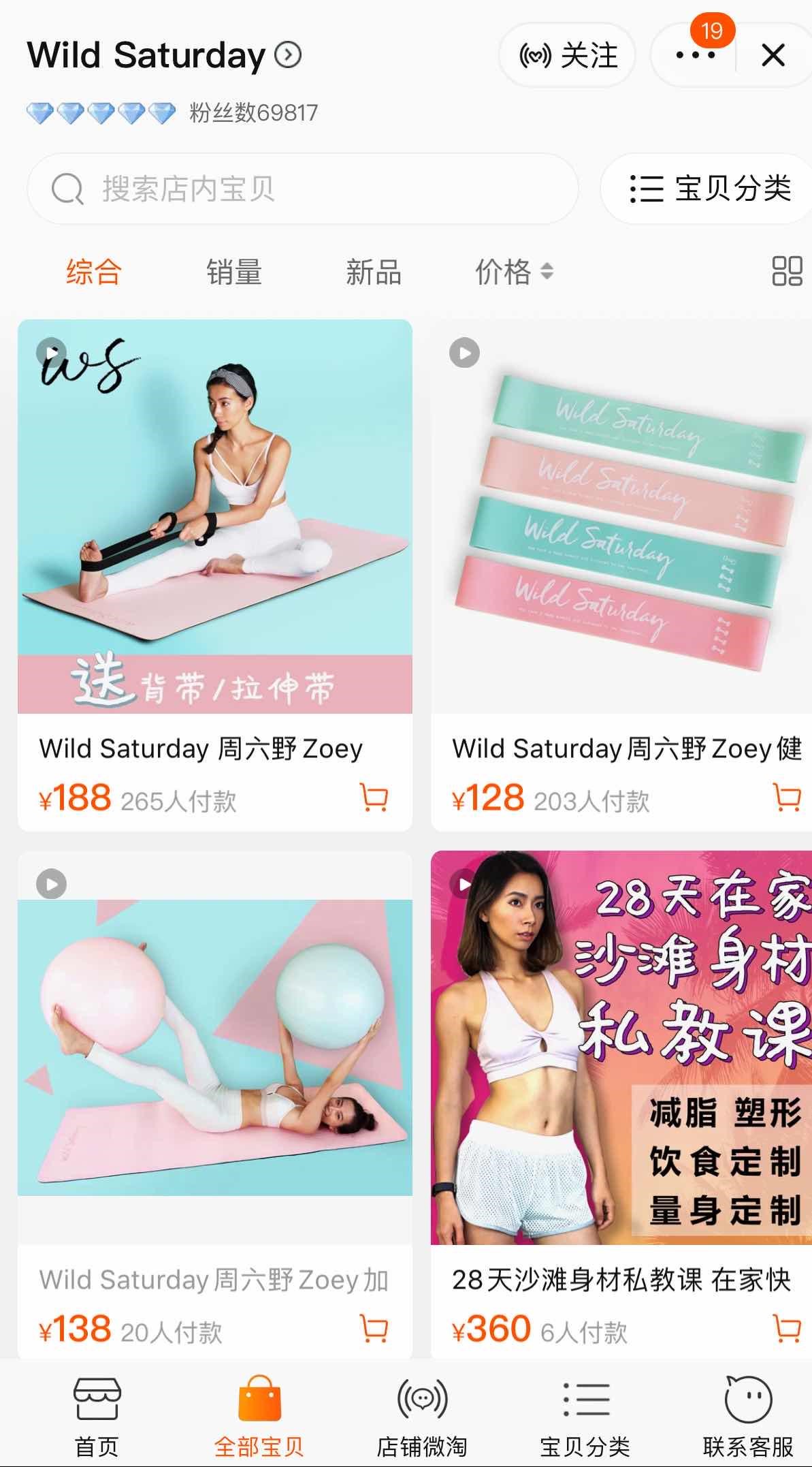 2016年年底,周六野开始发布视频,次年年中,她的私教课程就开始在微信渠道发售,很快也在她的淘宝店铺上架。仅微信一个渠道,周六野定价360元的私教课程就卖出100多万元销售额。