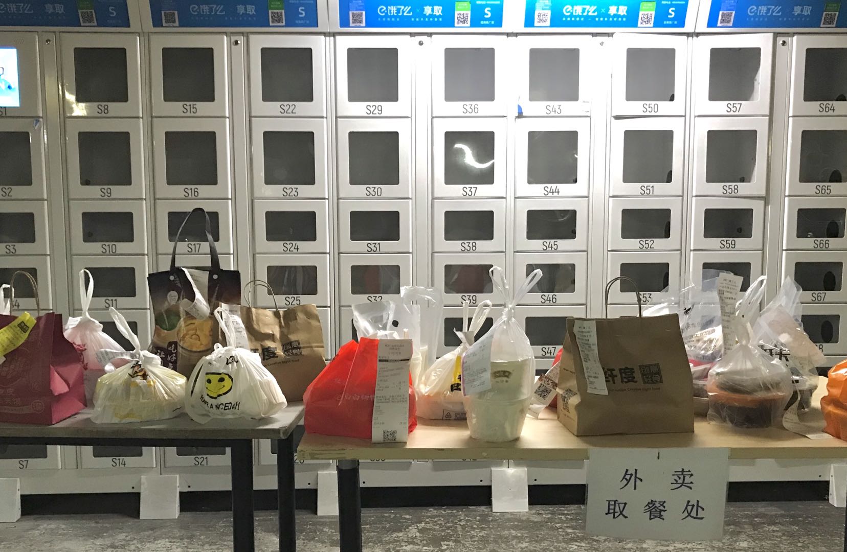 值得注意的是,和“网订柜取”类似的外卖柜目前空置率比较高。在写字楼地下室或者连通办公楼的地铁口,你能看到这样类似外卖柜的设施。疫情下,外卖员不能进入写字楼送餐,饿了么、美团开始在上海等城市布置外卖柜。