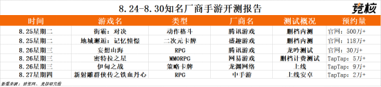 下周即将进行游戏测试的厂商包括:腾讯、网易、中手游、龙渊网络、盛趣游戏等。