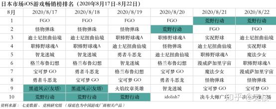 2020年8月17日—8月22日IOS游戏类畅销榜中,网易《荒野行动》异军突起,在8月20日从第十名的位置空降第二,仅落后于《命运-冠位指定》。随后在8月21日,拿下榜首之位,并持续保持。