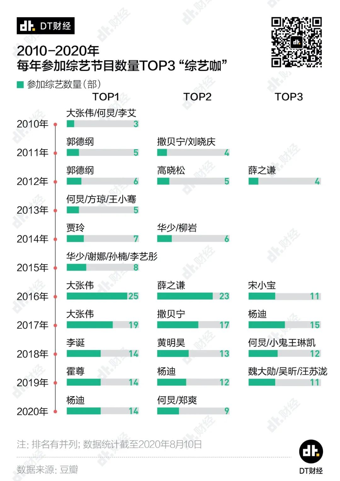 不过令DT君好奇的是,上述综艺担当们,究竟是什么时候开始霸屏的?