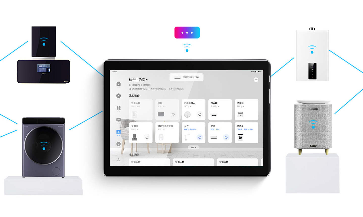 家电部分则代表着AIoT家电的原生能力,如空调进行室内降温升温、洗衣机清洁衣物、冰箱低温保存食物、厨电提升烹饪效率。这都是我们对家电最根本的印象,也是AIoT部分工作的前提,没有家电去各自对应使用场景,智能化做得再好也“感知不强”。