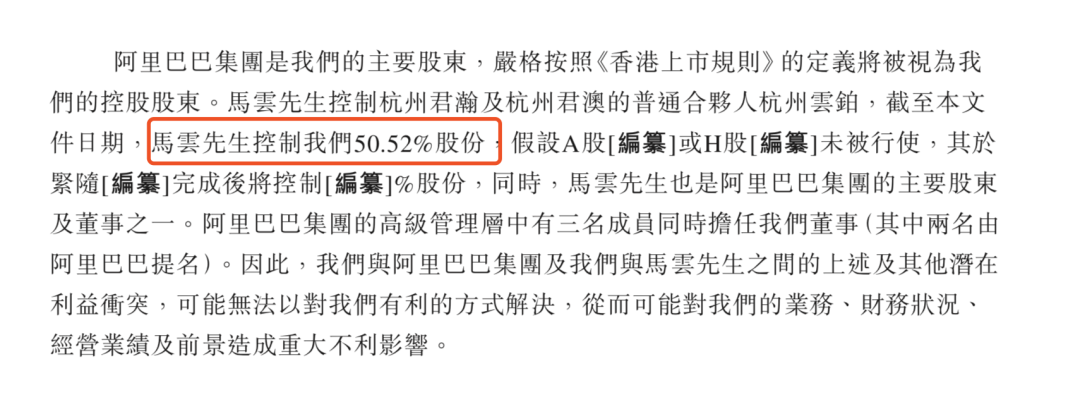 另外值得注意的是,招股书还提示,由于马云控制了蚂蚁50.52%的股份,其又同时是阿里巴巴的主要股东和董事之一,加上各公司间关联交易的复杂性,其中潜在的利益冲突可能也会对蚂蚁的业务的前景产生不利影响。
