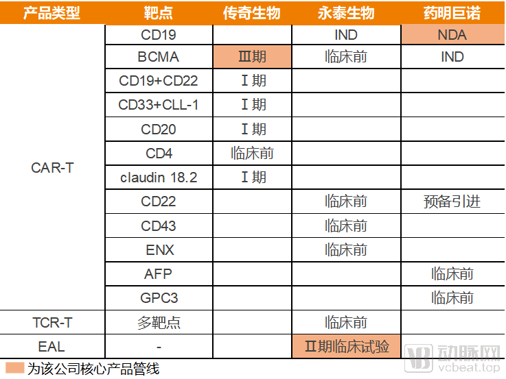 目前已经上市的三家企业,管线分布明显比较分散,靶点重叠的产品,只有CD19、BCMA和CD22三个。