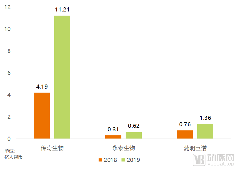 研发开支方面,在已经上市的三家企业中,传奇生物2019年超过10亿元的研发开支一骑绝尘。相比之下,永泰生物和药明巨诺的研发开支就要小得多。