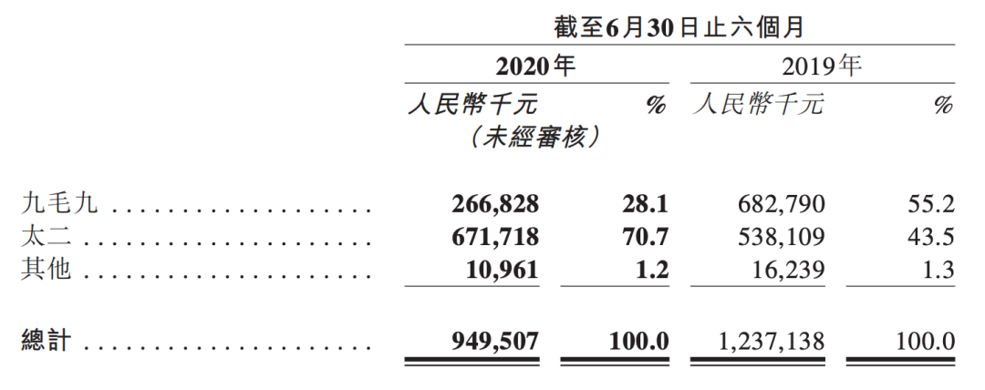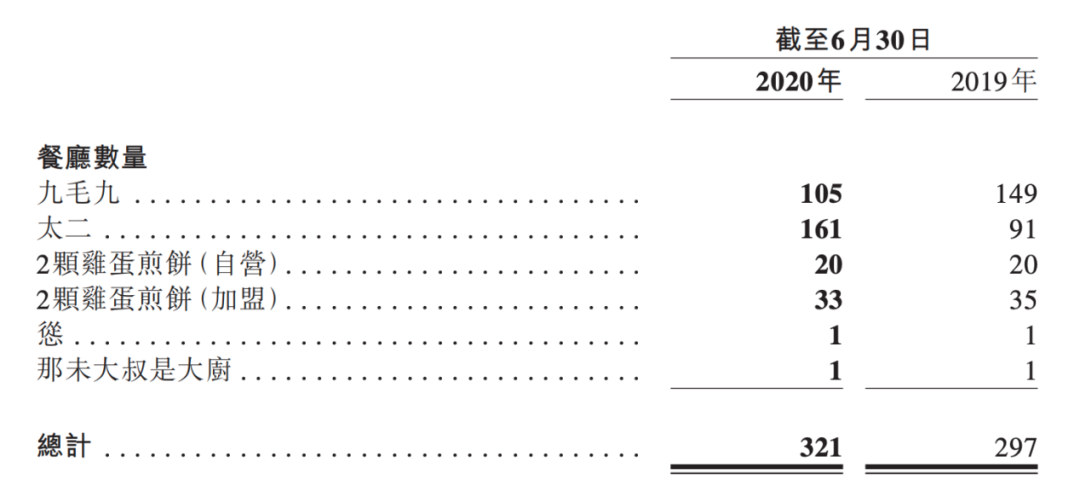 即使遭受疫情重创,太二收入却逆势同比增长24.8%至6.71亿元,为集团贡献70.7%的收入。作为集团的“两驾马车”,九毛九渐显疲态,而保持扩张态势的太二,能否继续挑大梁?一向善用副牌分散经营风险的九毛九,又会对子品牌做出怎样的调整?