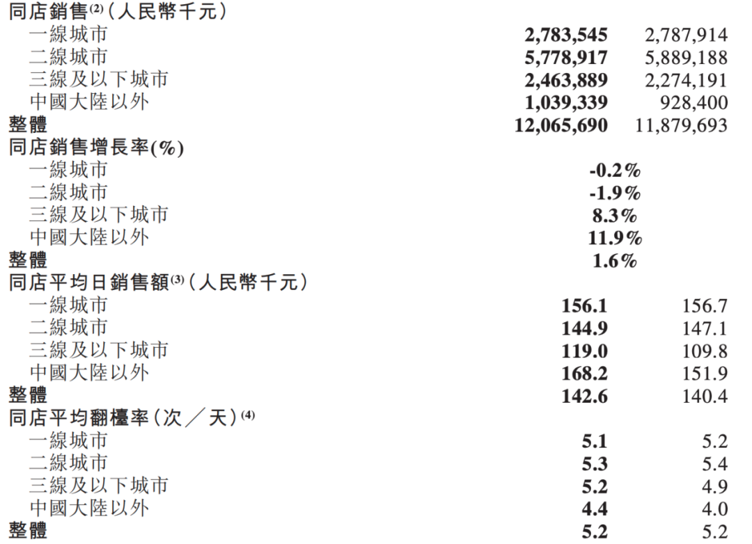 其实,从海底捞身上也能看到一些端倪:2019年年中市值虽然再创新高,并以每1.2天开一家新店的速度在扩张,但在一二线城市,海底捞翻台率、同店销售已开始下滑,市场趋于饱和。