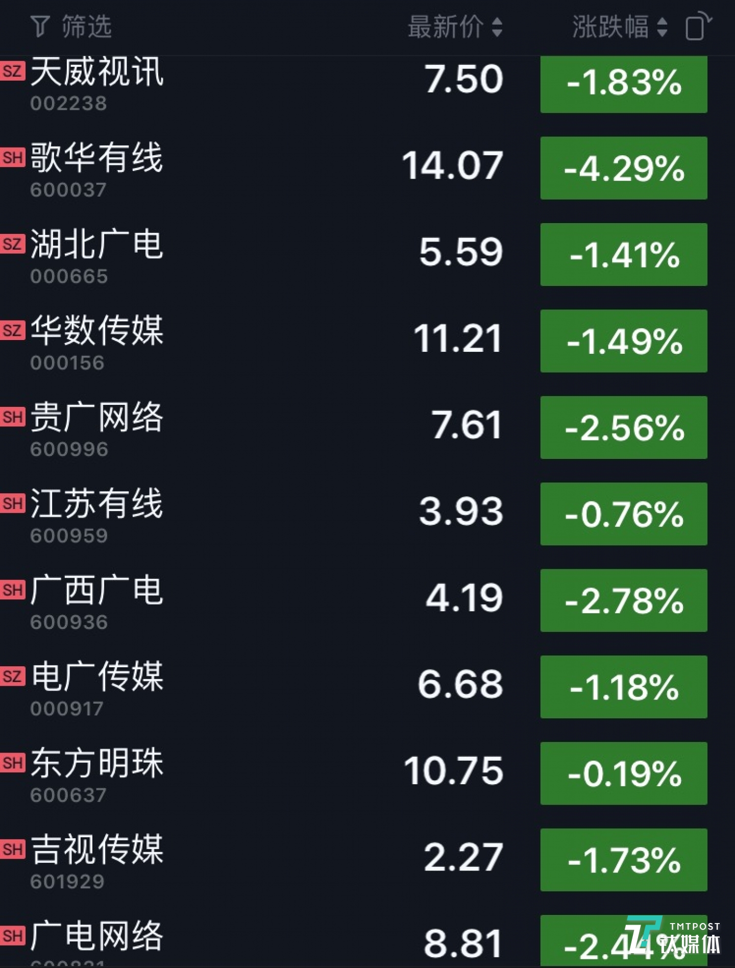 公告发布后,前述11家广电系上市公司8月27日开盘后均大涨,其中广电网络直接涨停。8月28日,部分公司开盘继续上涨5%左右,但随后回落。截至8月28日收盘,几乎均跌回公告发布前的价格。