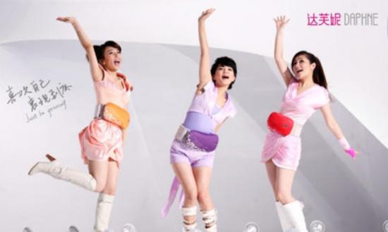 达芙妮请的代言人是当时正当红的组合S.H.E和歌手刘若英。这些代言人就透露着达芙妮的“亲民”的一面。S.H.E的三位女生漂亮是漂亮,但是那种邻家女孩的漂亮,没有攻击性。刘若英更是号称“平民天后”。