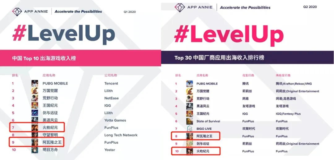 App Annie数据显示,2020年Q1-Q2中国应用出海收入榜单,点点互动旗下两款拳头SLG产品《火枪纪元》和《阿瓦隆之王》依然稳居头部阵营,在前十名中强势占据两席。