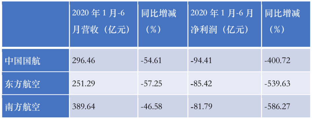 不止是小航司,中国国航(601111.SH/00753.HK)、东方航空(600115.SH/00670.HK/NYSE:CEA)、南方航空(600029.SH/01055.HK/NYSE:ZNH)等三大航的日子也不好过。近日公布的半年报显示,三大航合计亏损超260亿元,是去年全年利润的两倍。