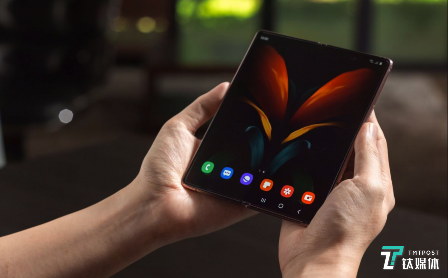 钛媒体9月1日消息,三星电子发布了旗下第三代折叠屏手机Galaxy Z Fold2 5G。三星Galaxy Z Fold2 5G采用一体式流畅设计,外部屏幕采用了6.2英寸全视开孔屏设计,即使在闭合状态下,亦能查看电子邮件、查找定位、观看视频内容等。