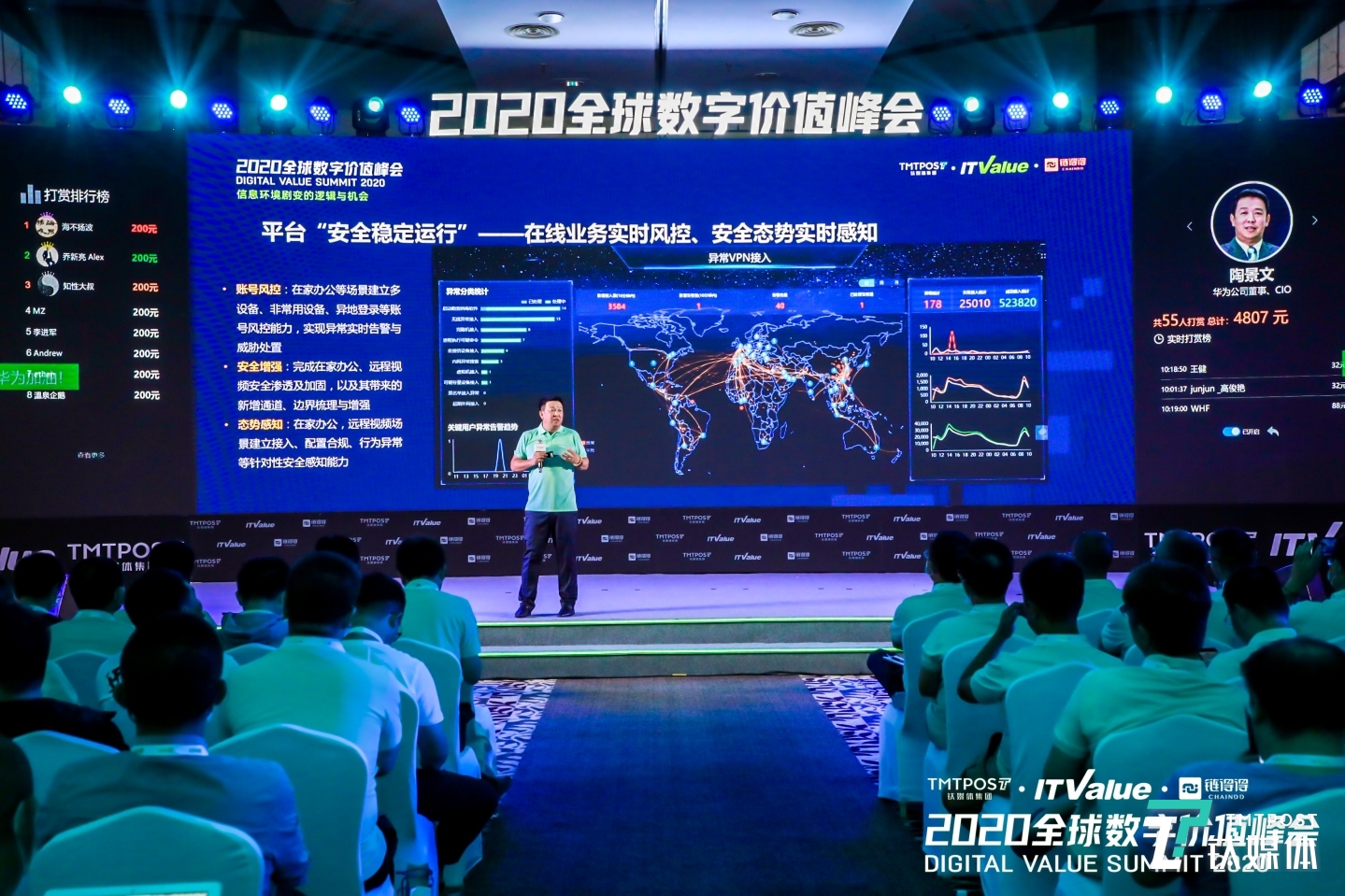 9月3日,在钛媒体集团和ITvalue主办的2020全球数字价值峰会暨第12届IT价值峰会上,华为公司董事兼质量流程IT总裁陶景文直言。