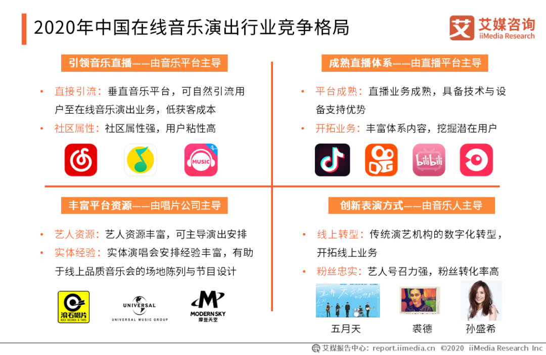 在版权保护机制相对健全的欧美,传统唱片业向数字音乐产业过渡之后,仍具有对平台方的绝对议价能力,同时也导致了"版权方强势,平台方弱势"的紧张关系。反观国内,这种情况恰恰相反,国内的互联网音乐平台相对唱片公司更为强势。而在用户需求的挖掘上,正是疫情的契机,才加速了线上演出业务的探索。