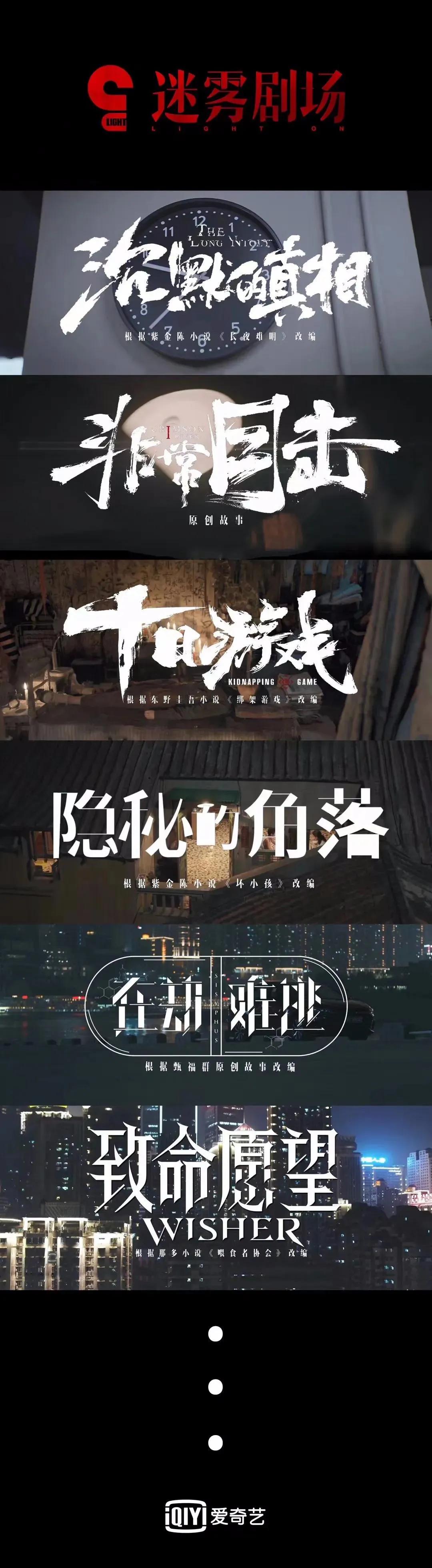 后续待播的《沉默的真相》、《致命愿望》亦是如此。《沉默的真相》改编自紫金陈“社会派”推理作品三部曲之三《长夜难明》,这也是紫金陈最具现实批判意义的小说,故事聚焦一场因意外而在大庭广众之下被当场破获的杀人抛尸案,结构精巧,逻辑严密,且真相让人极其震撼;《致命愿望》改编自那多悬疑推理小说《喂食者协会》,故事设定在悬疑的基础上融和了备受年轻人喜欢的冒险与轻科幻元素。