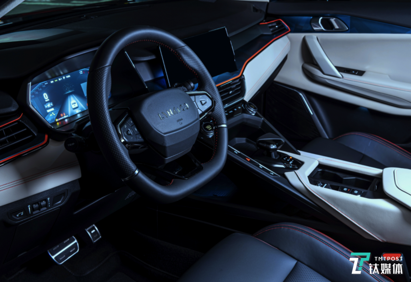 内饰方面,领克06内饰采用了全新的设计语言,整体看上去更加动感十足。中控台整体层次感较强,同时还采用了大面积皮质包裹。此外,多功能方向盘前方配有全液晶仪表,旁边中控采用12.7英寸的悬浮式液晶屏。