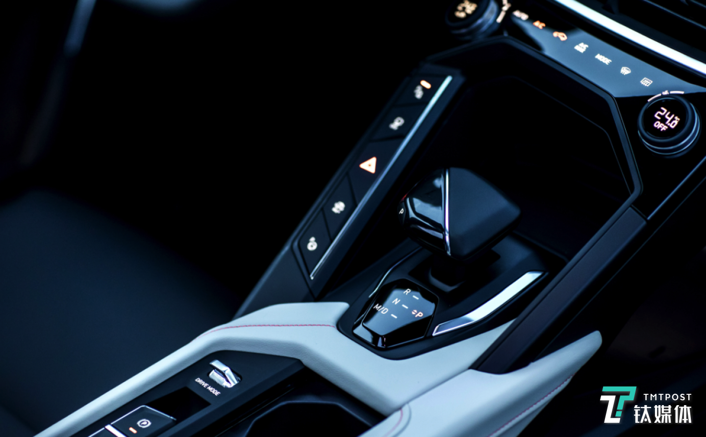电子挡杆采用全新造型,按键布局也进行了调整,挡杆左前方的按键区加长,电子手刹移至水杯架左侧。整体来说新车内饰设计层次感分明、更加运动化。