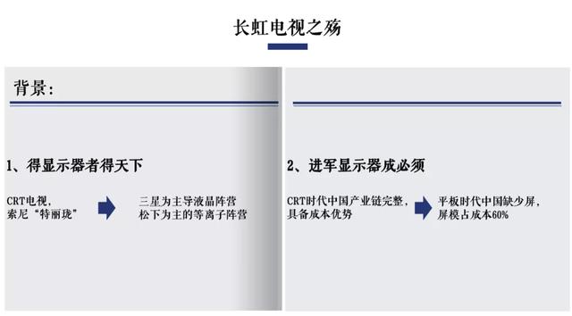 回过头来看中国,在以特丽珑为主的CRT电视时代,因为CRT在技术上复制门槛较低,中国电视机厂商通过低成本跟进获得生存。