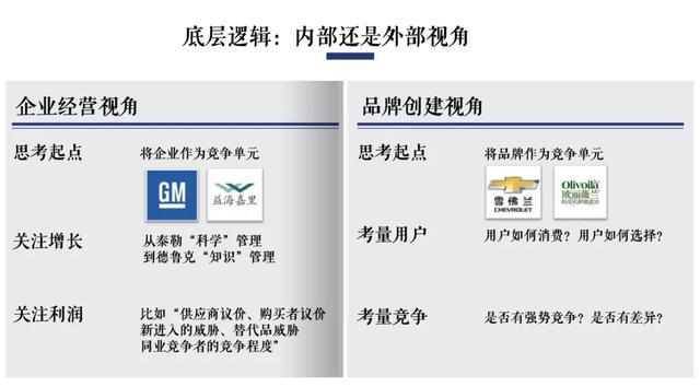 即很大程度上取决于当我们在思考品牌的时候,到底是内部视角还是外部视角?