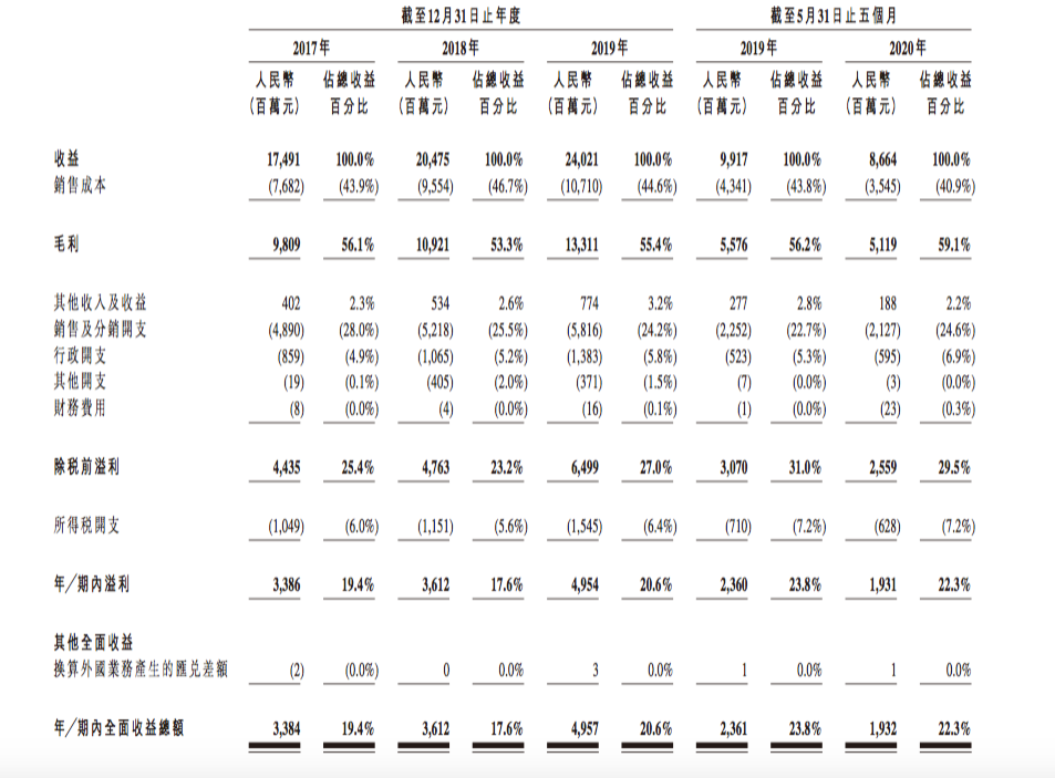 农夫山泉主要财务数据,图源农夫山泉招股说明书