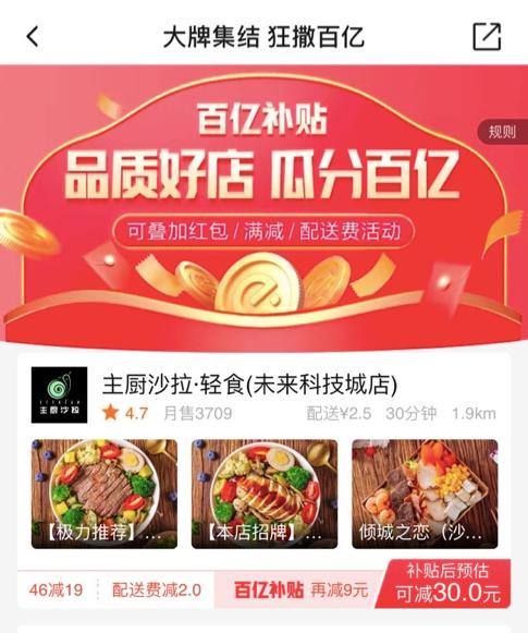 8月27日,饿了么宣布“百亿补贴”计划正式上线。从9月1日开始,重点覆盖城市将从24个扩展到超过100个,累计补贴100亿资金。